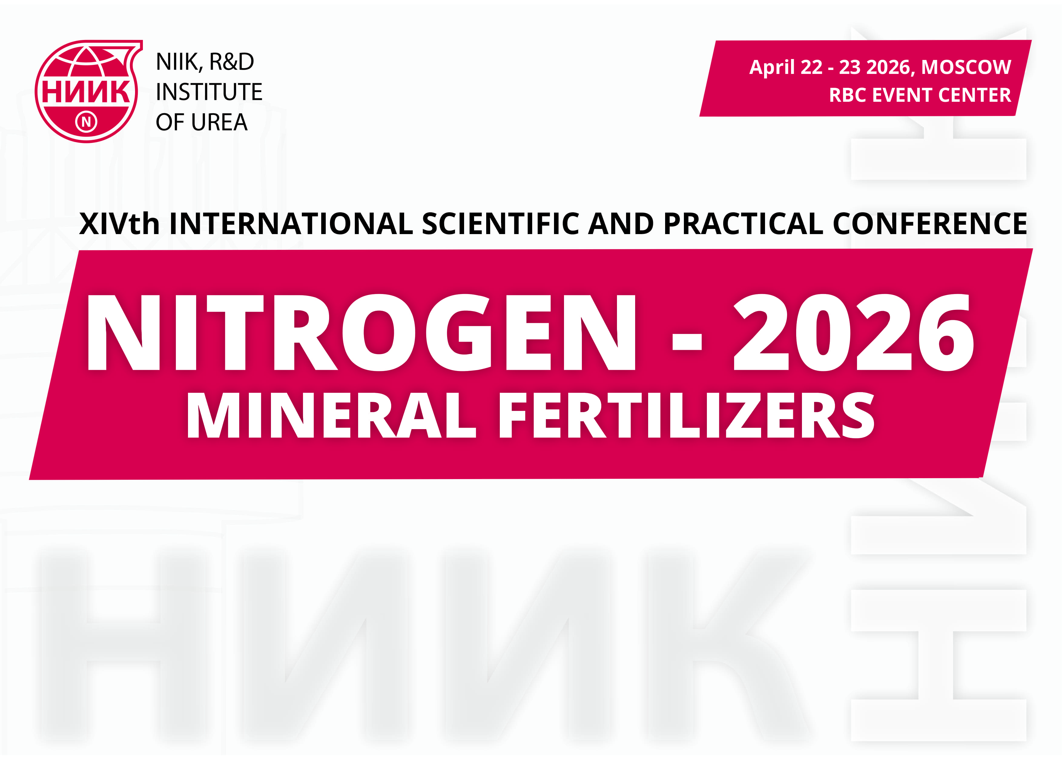 On April 22–23, 2026, NIIK will hold the annual conference, “Nitrogen. Mineral Fertilizers 2026,” in Moscow.The conference will bring together leading representatives of the chemical and gas chemical industries, with more than 300 participants expected, with over 60% of top managers from major technology manufacturers and chemical industry companies.